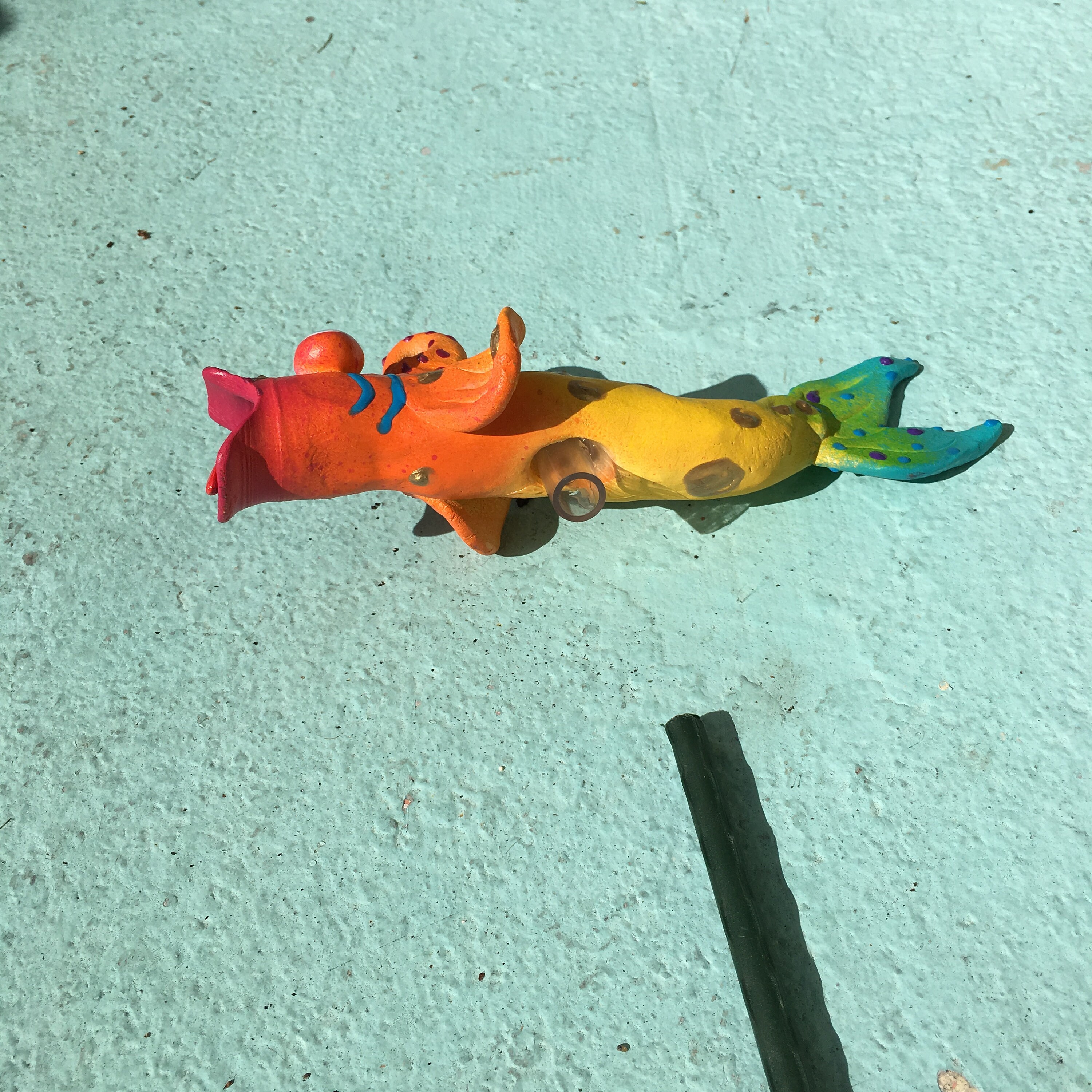 Love this fish. I have many of Pondscum’s ceramic pieces. This will bring a lot of color to my garden. It’s very well made. I always get instructions on taking care of my ceramic pieces so they continue to look vibrant through the years and they have.