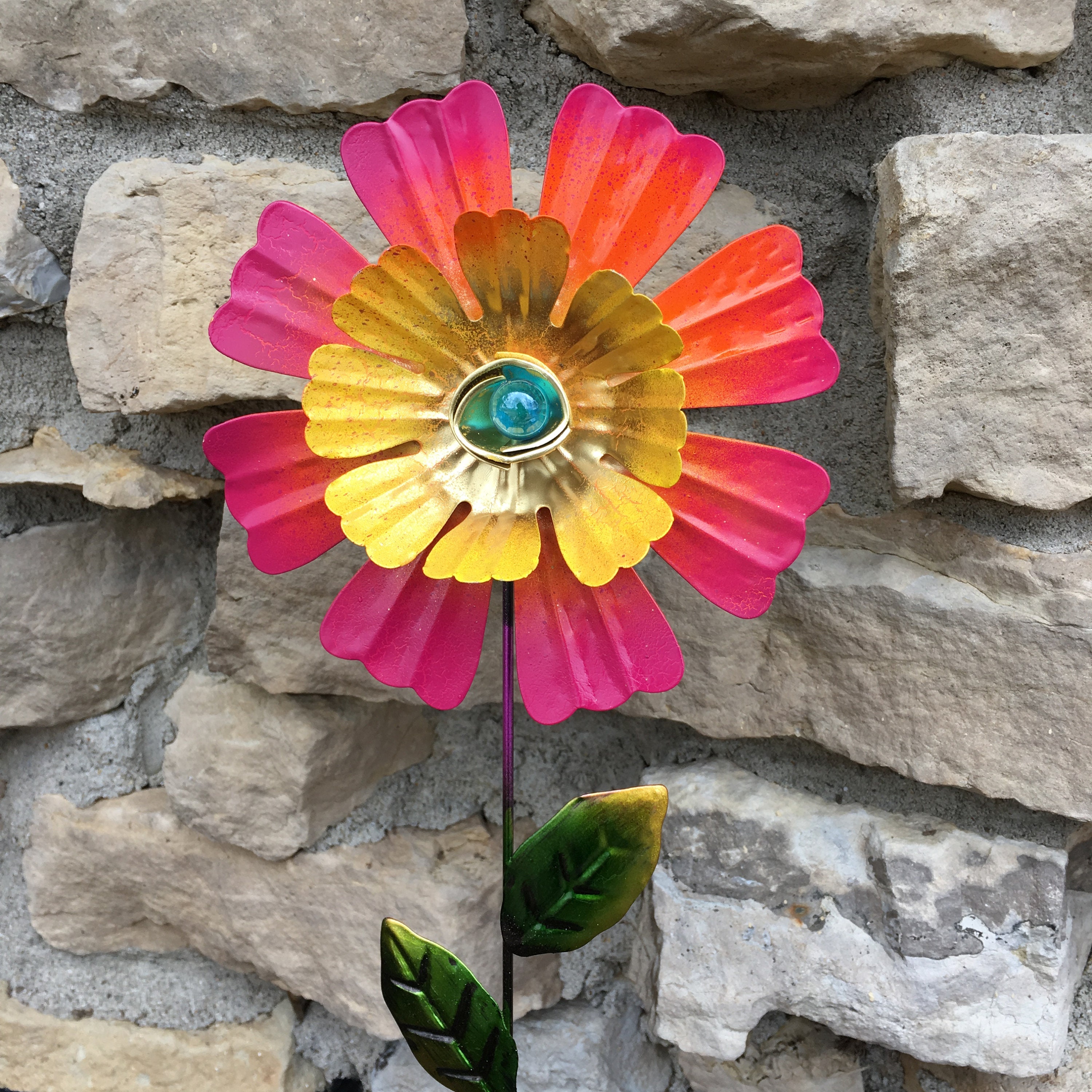 This metal whimsical flower garden stakes will make the perfect addition to any yard or Fairy Garden. This Bright Flower is a Lovely addition to your backyard, courtyard or garden!