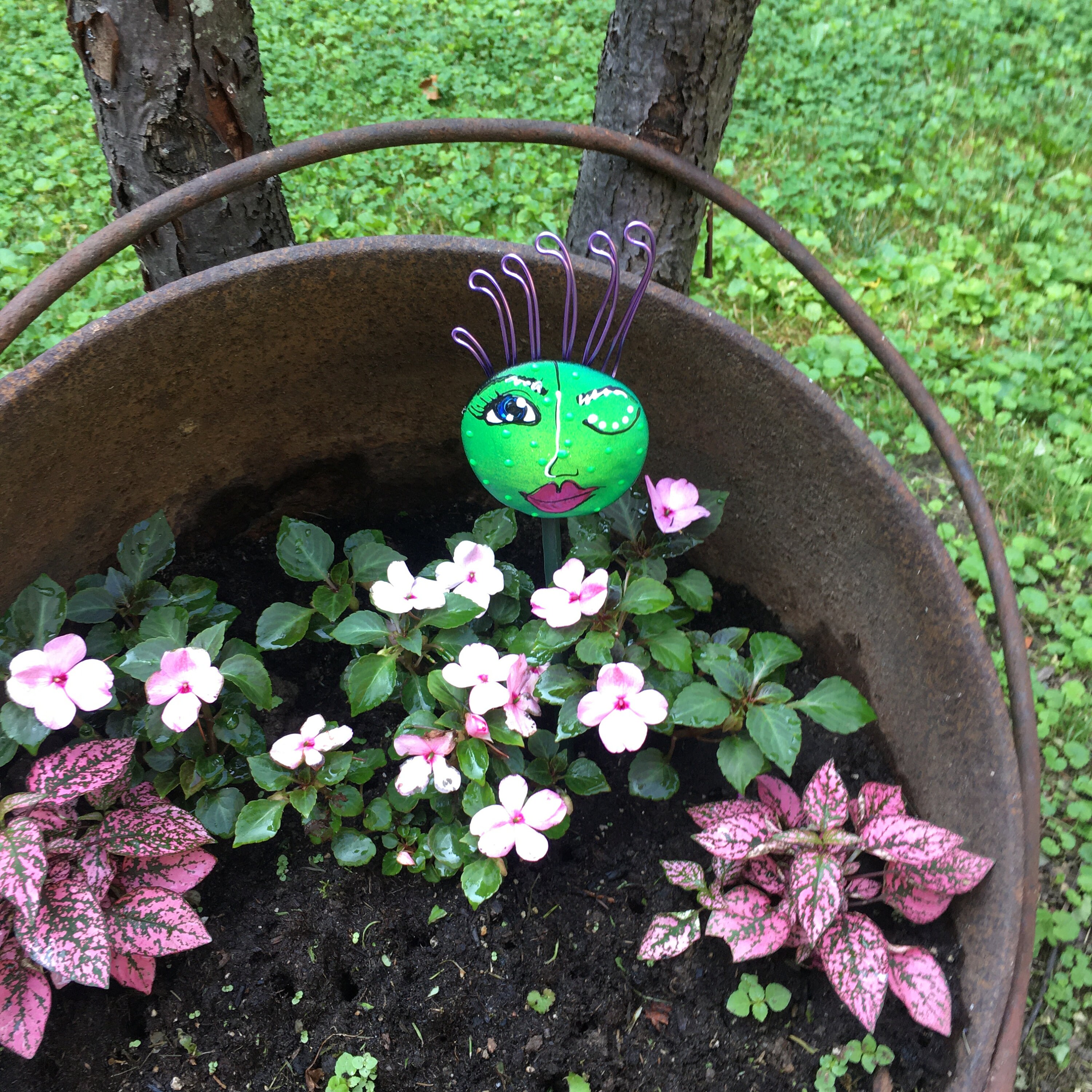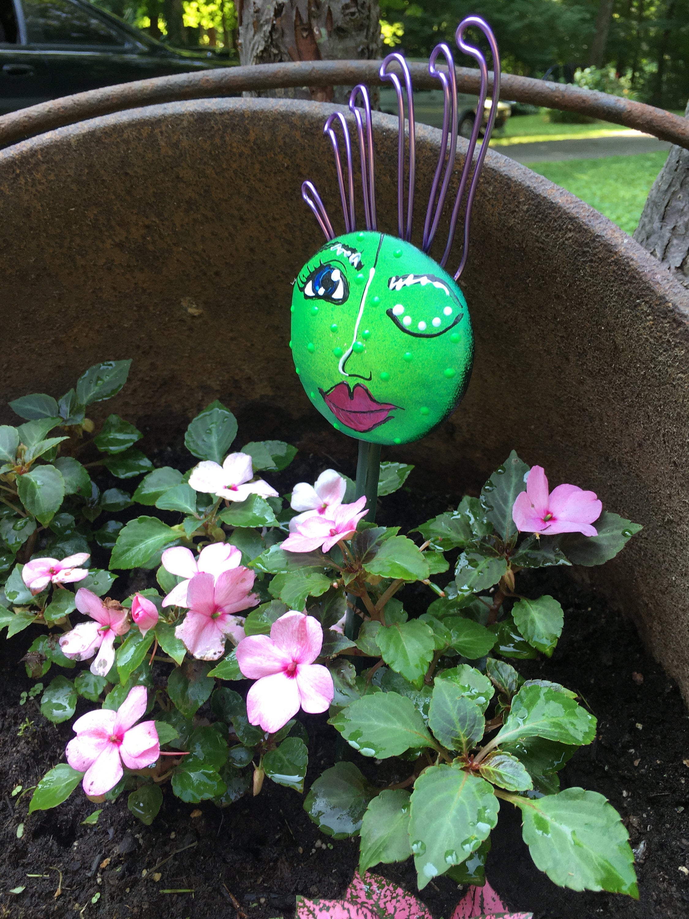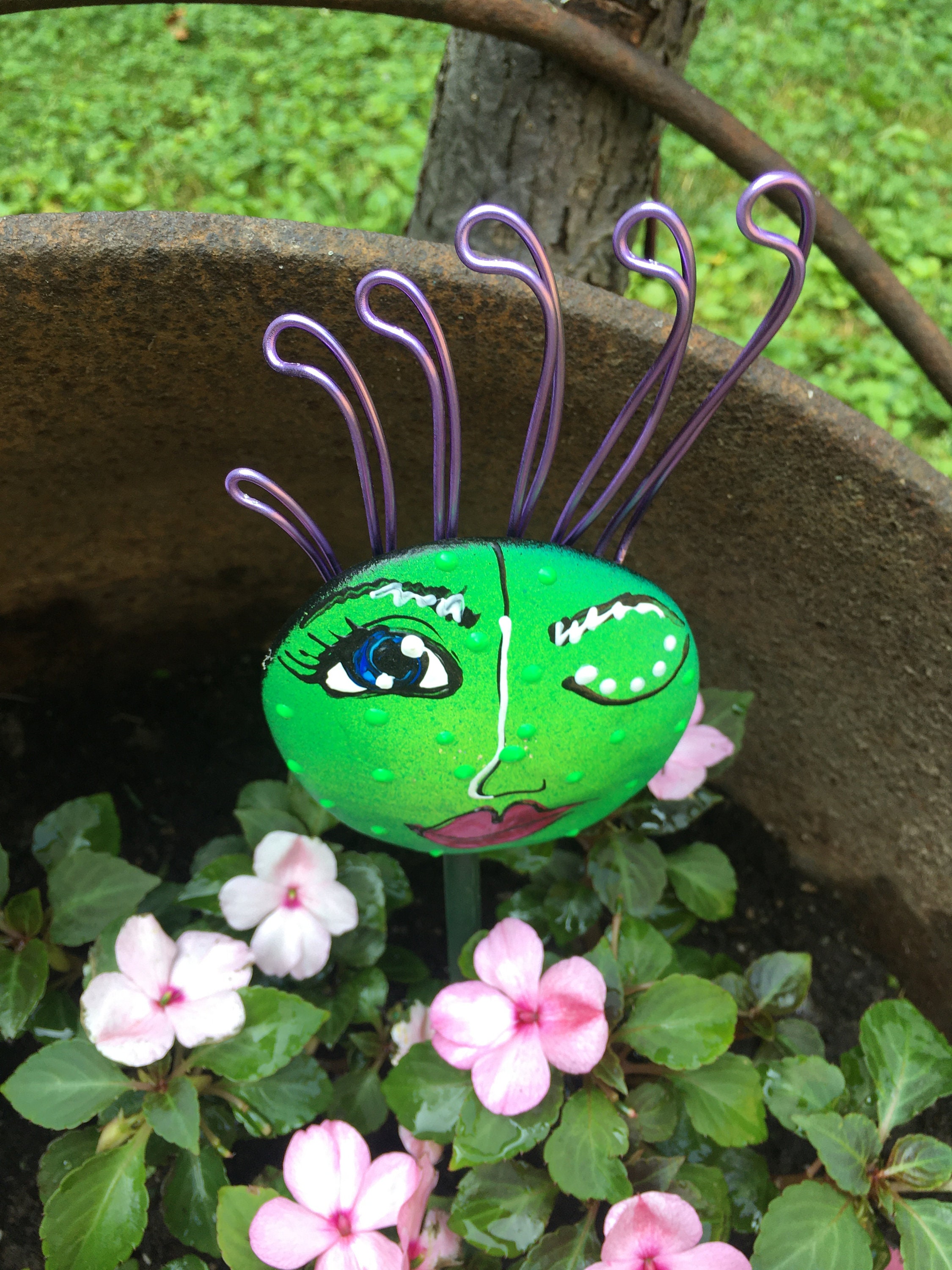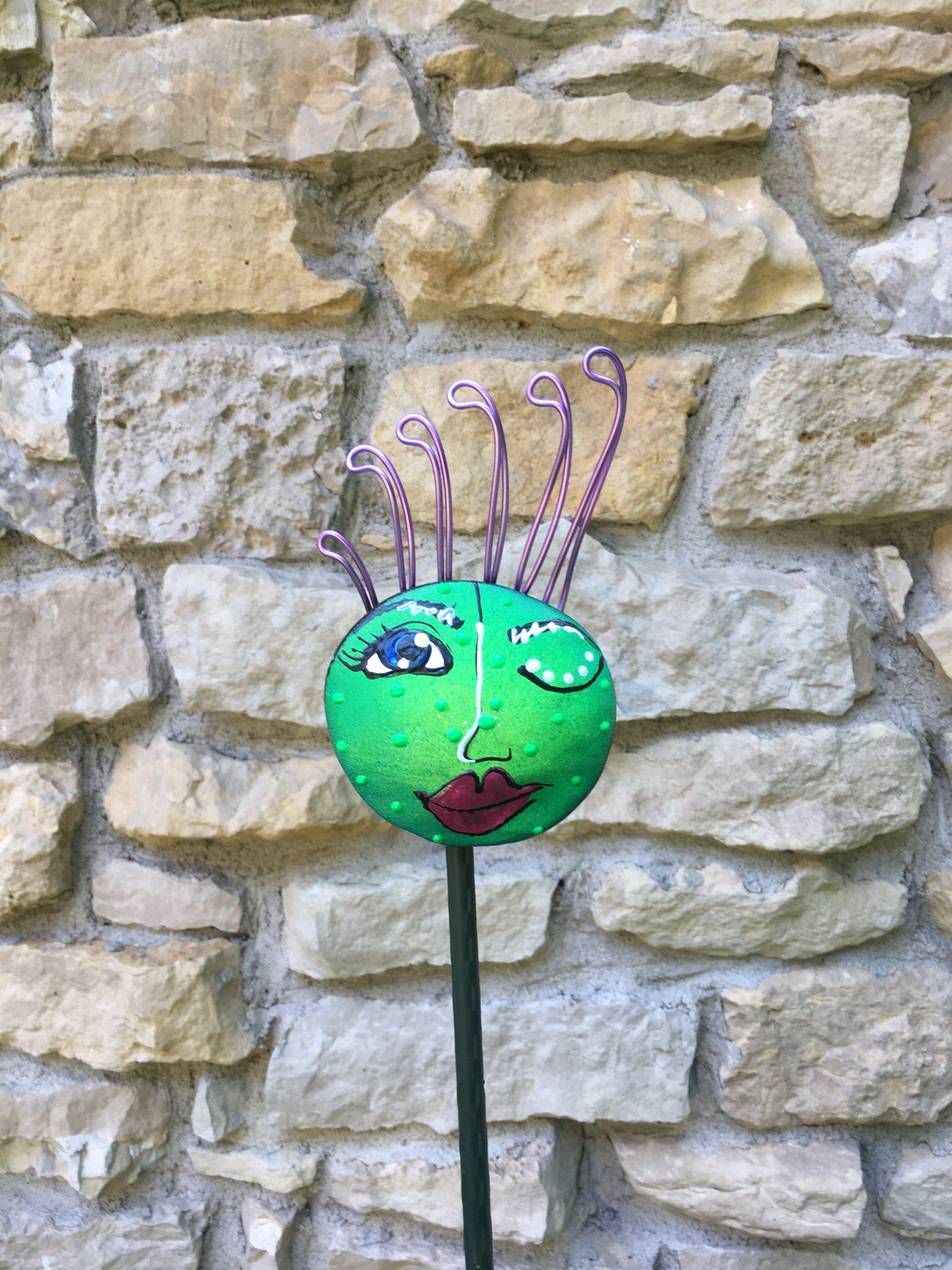 This Bright fun Unique Face Yard Stake is a Lovely addition to your backyard, courtyard or garden!
