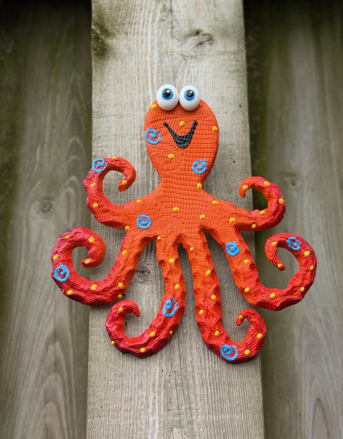 This cheerful octopus is sure to bring a smile and a touch of the ocean to your home! I hope you enjoy my work as much as I enjoy making them.