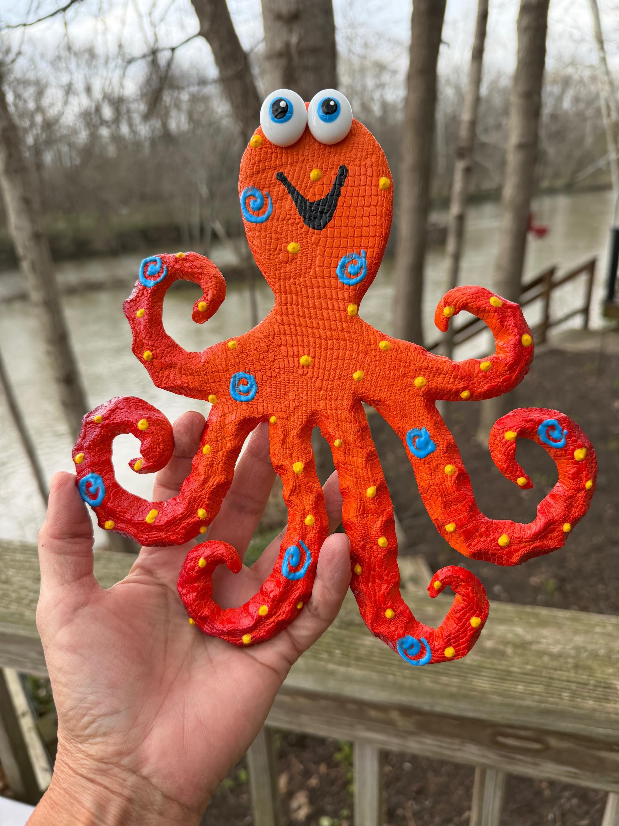 Each piece is individually handmade and painted, giving every octopus its own unique character.