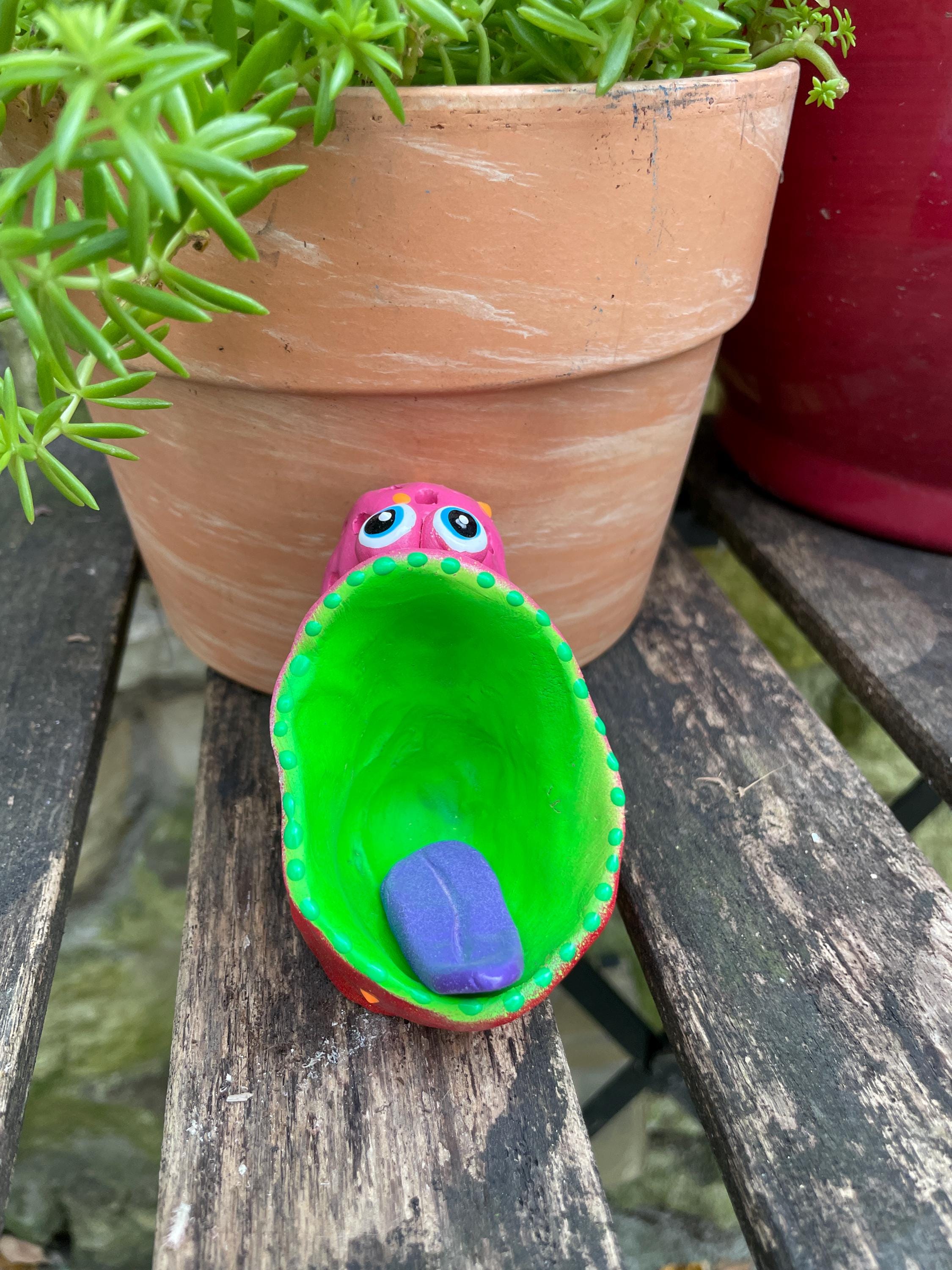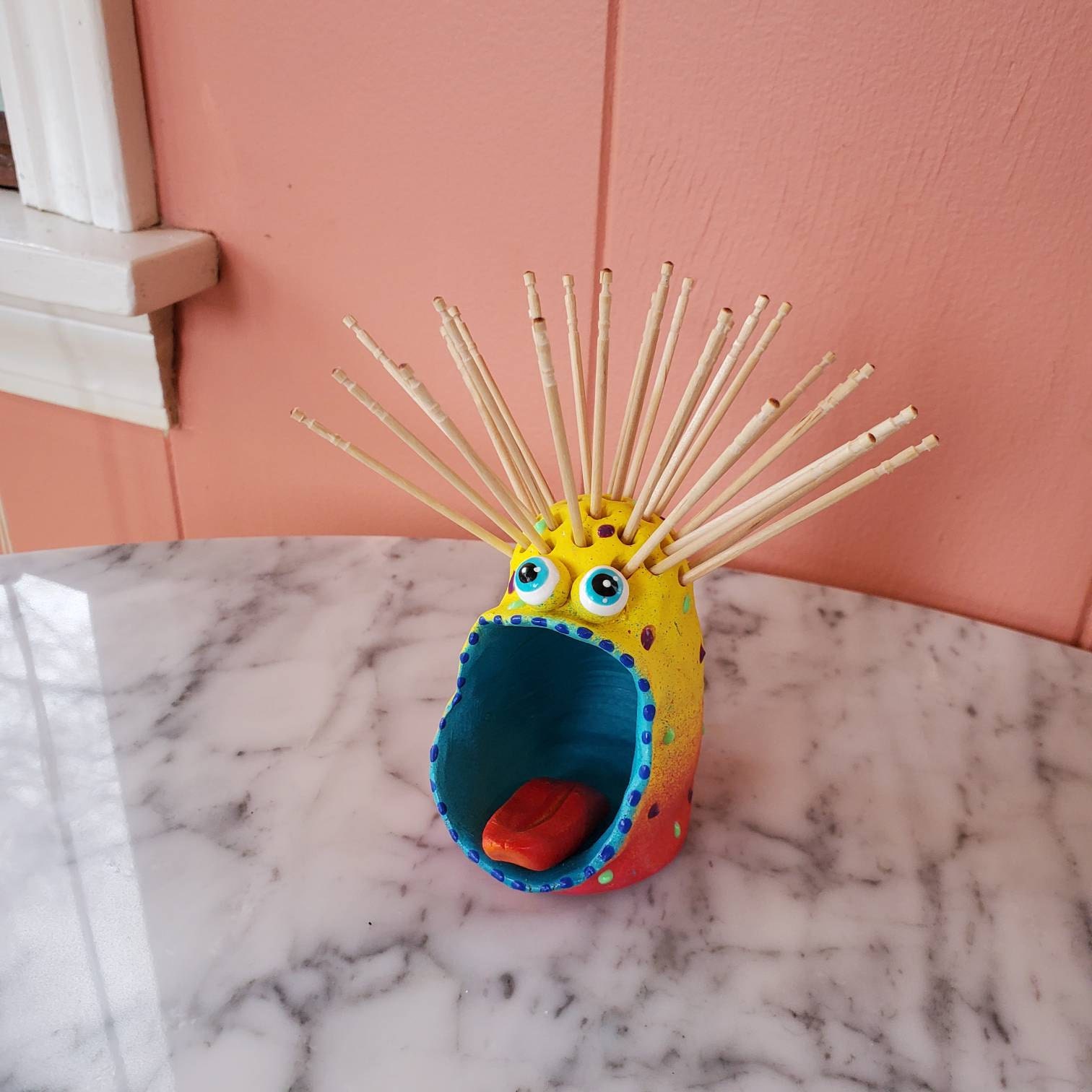Add a dash of whimsy and humor to your table or kitchen with this one-of-a-kind Monster Alien Toothpick Holder! Handmade from durable white stoneware clay and hand-painted with care, this little alien brings a playful twist to serving toothpicks. With a delightfully silly expression, it’s bound to make you smile each time you reach for a toothpick.