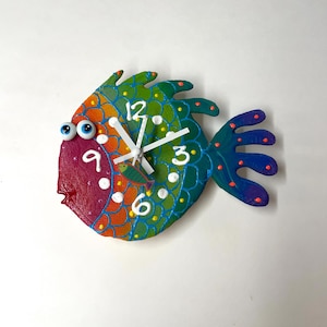 This clever ceramic Fish wall clock with matching, swinging pendulum is hand made in my art studio in Fishers, Indiana.
