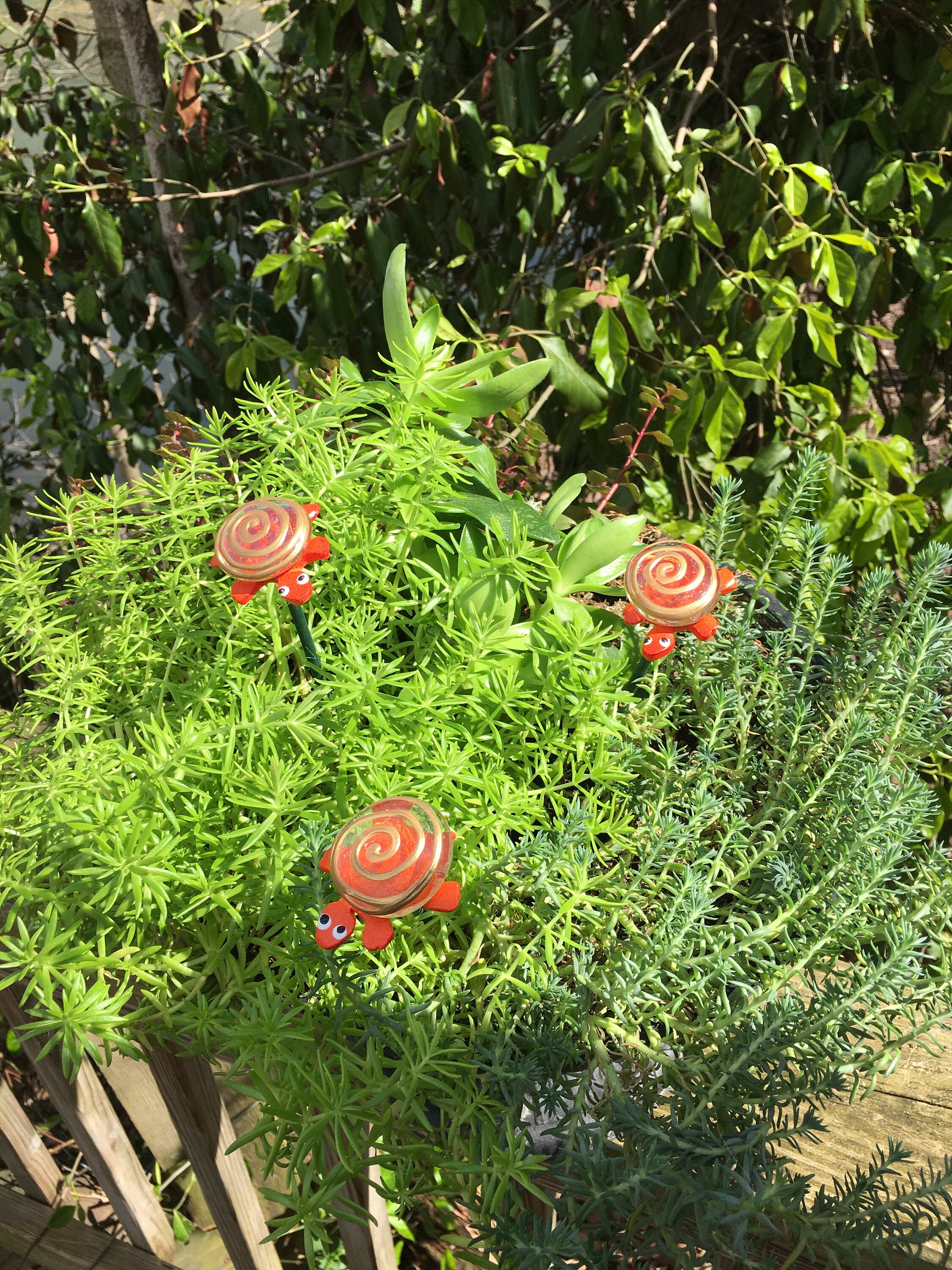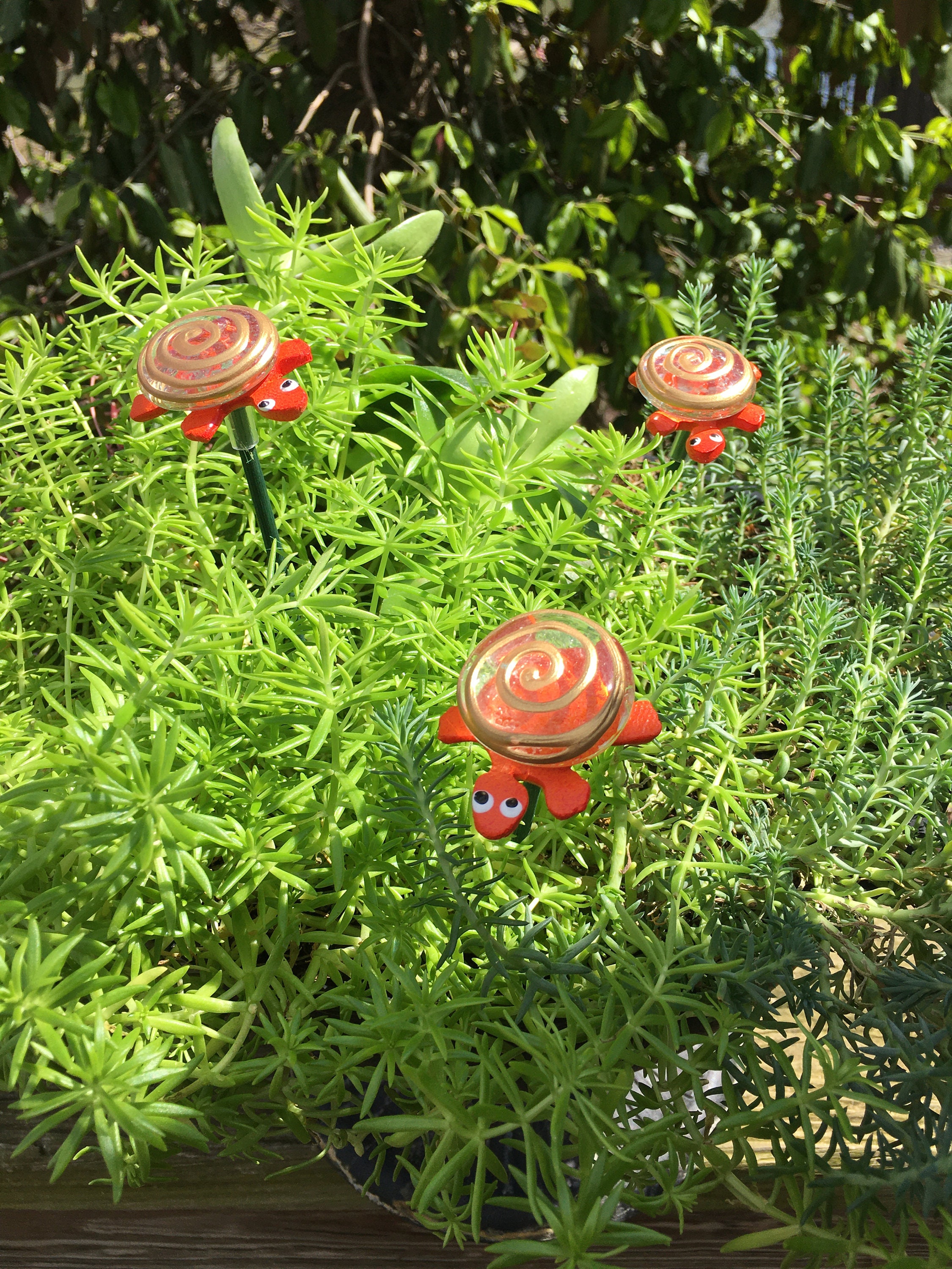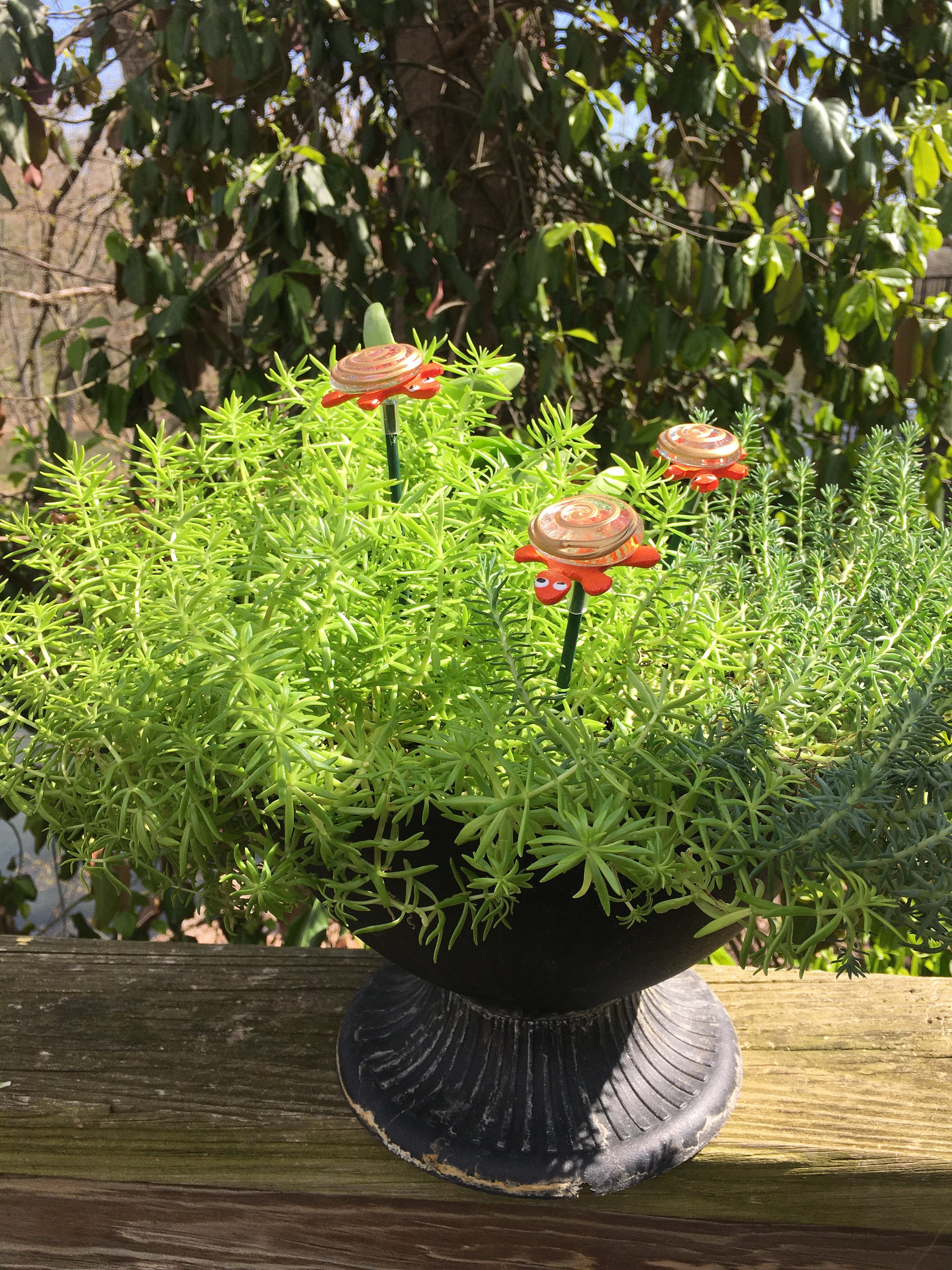 Each piece is lovingly hand formed, as well as each piece is a base coat of acrylic paint with ceramic stains and textured acrylic paint detailing. My garden art is mounted on a hand painted wooden dowl rod and made using the highest quality stoneware clay.