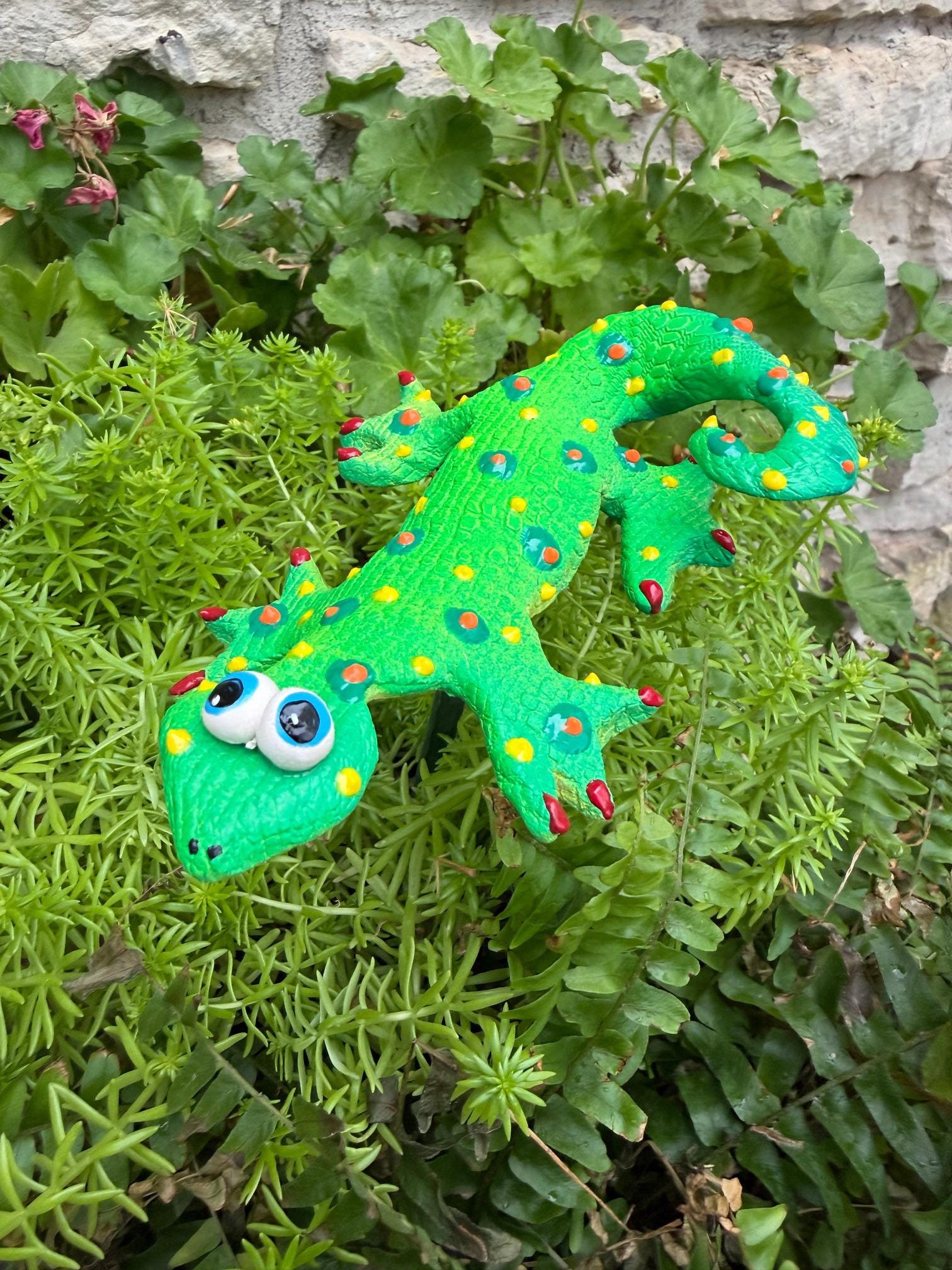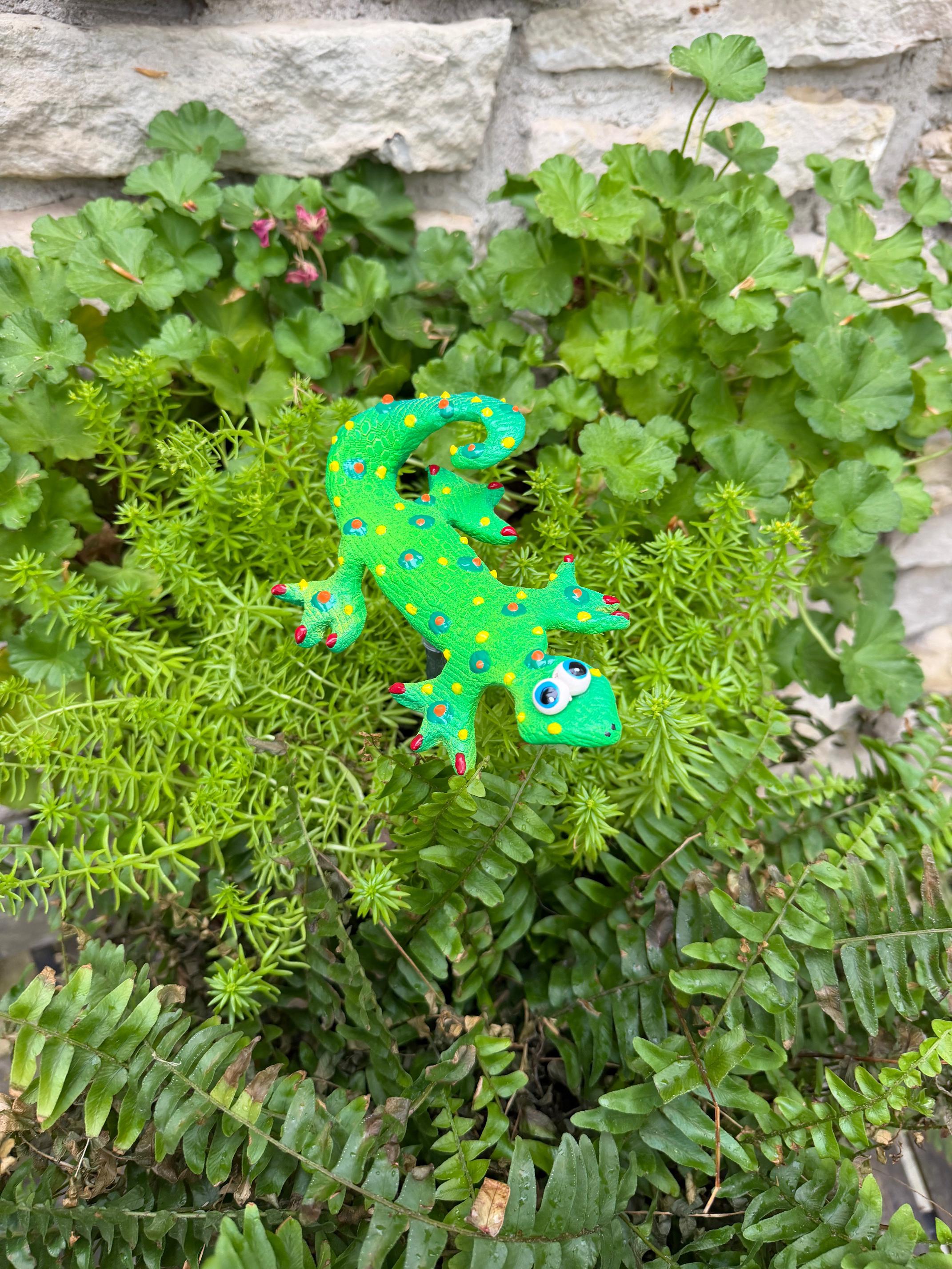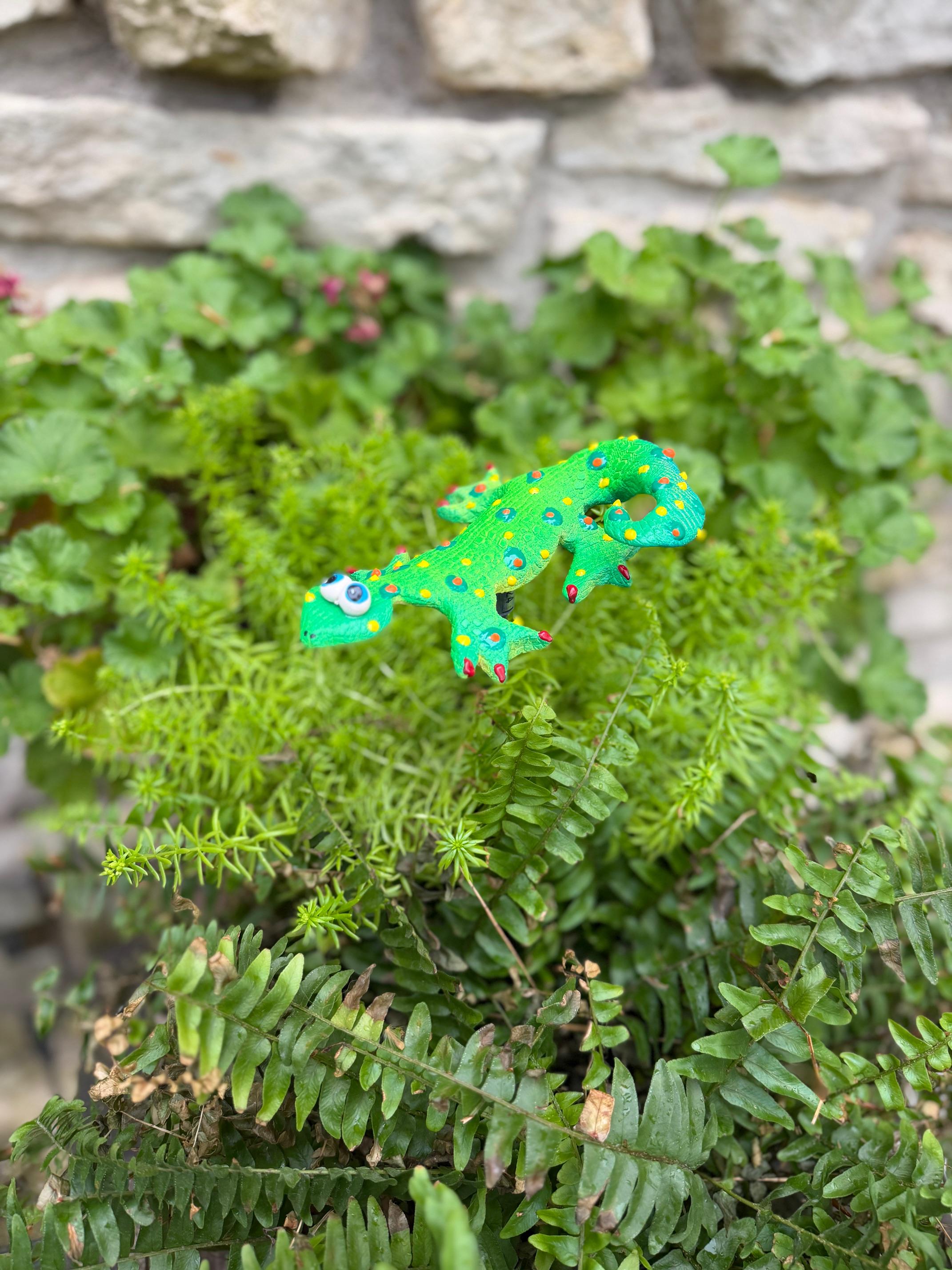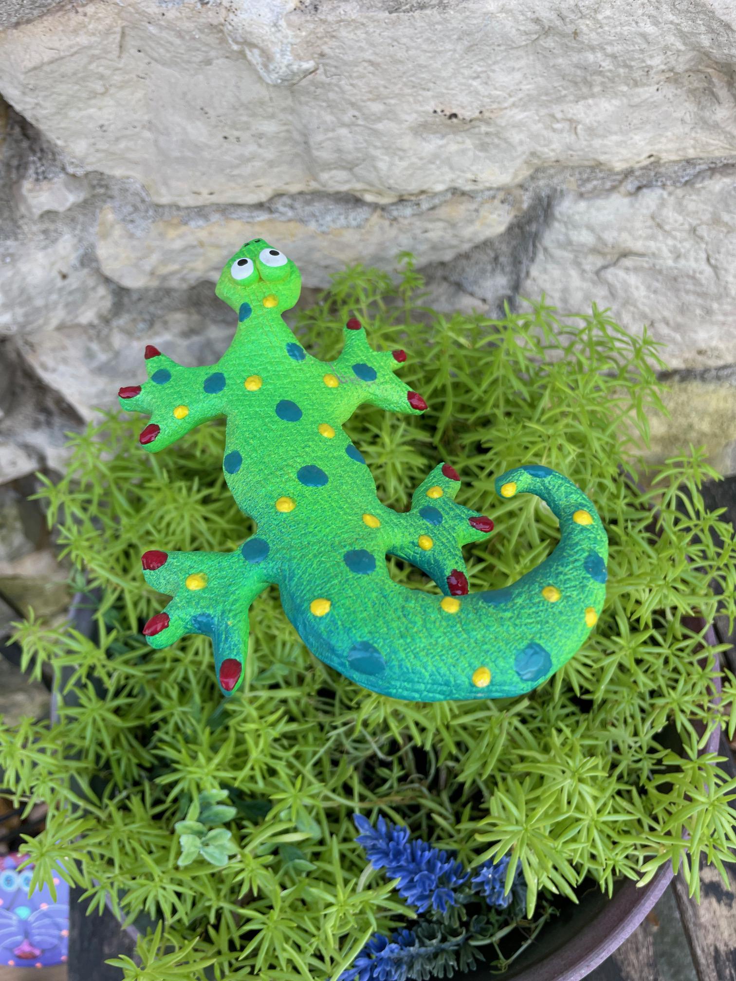 The Lizard is weather-resistant and require no watering, making it an ideal choice for any garden or outdoor space. These Lizards are also airbrushed with enamel paint and finished with a clear coat spray with UV-inhibiting properties to protect against the sun's fading effects.