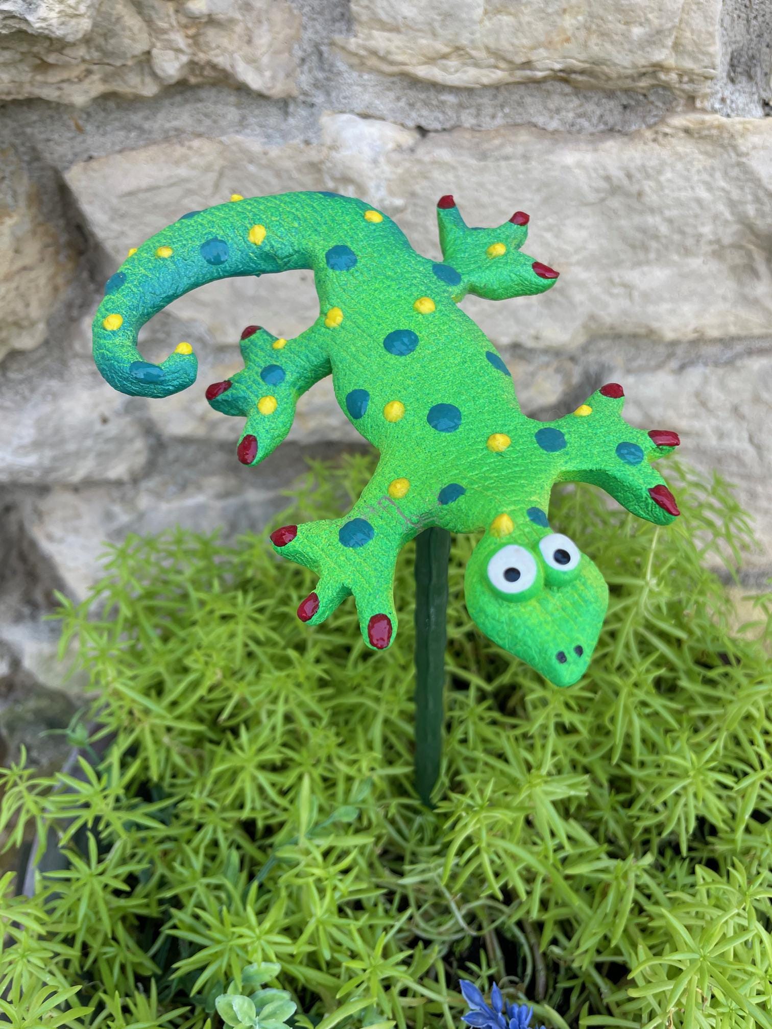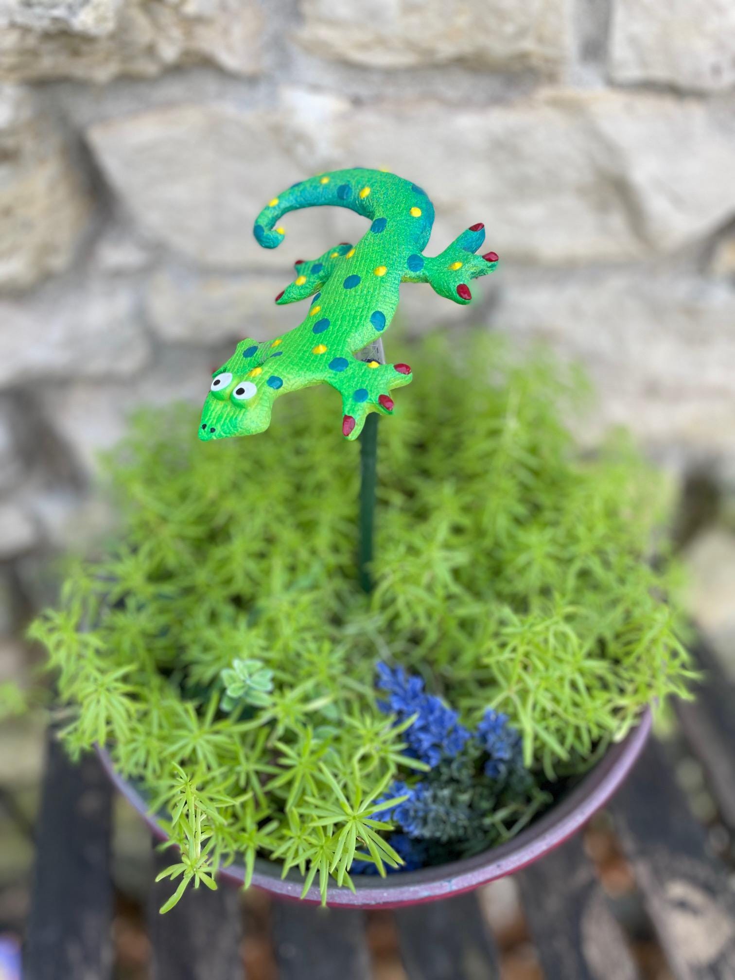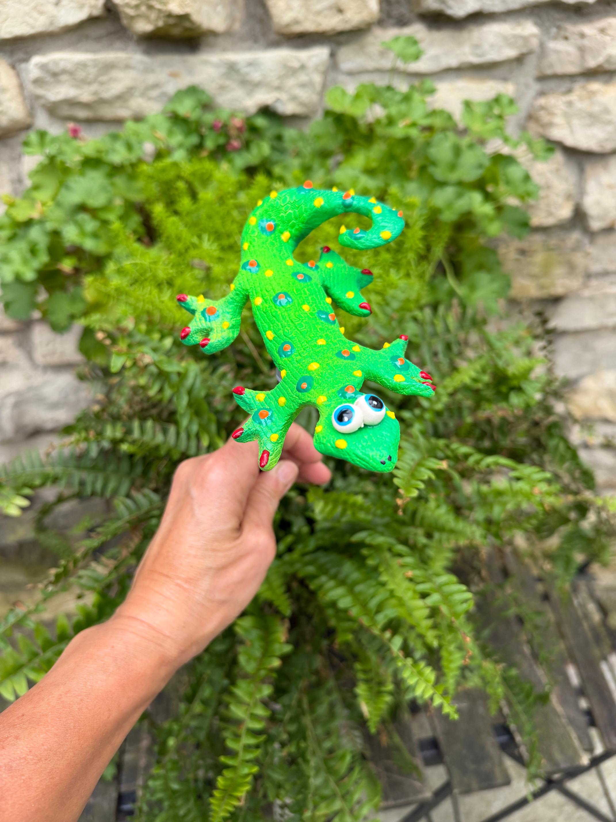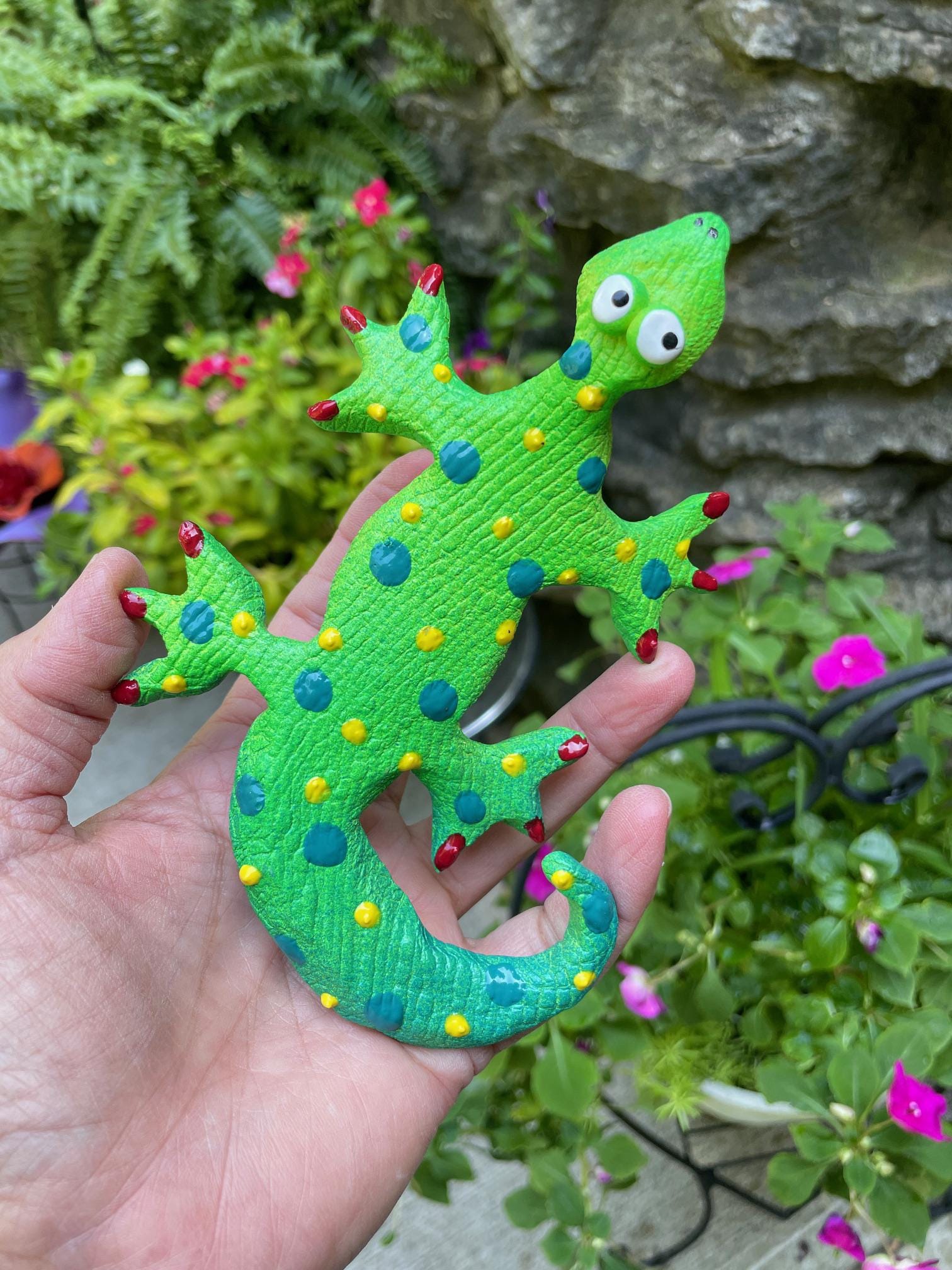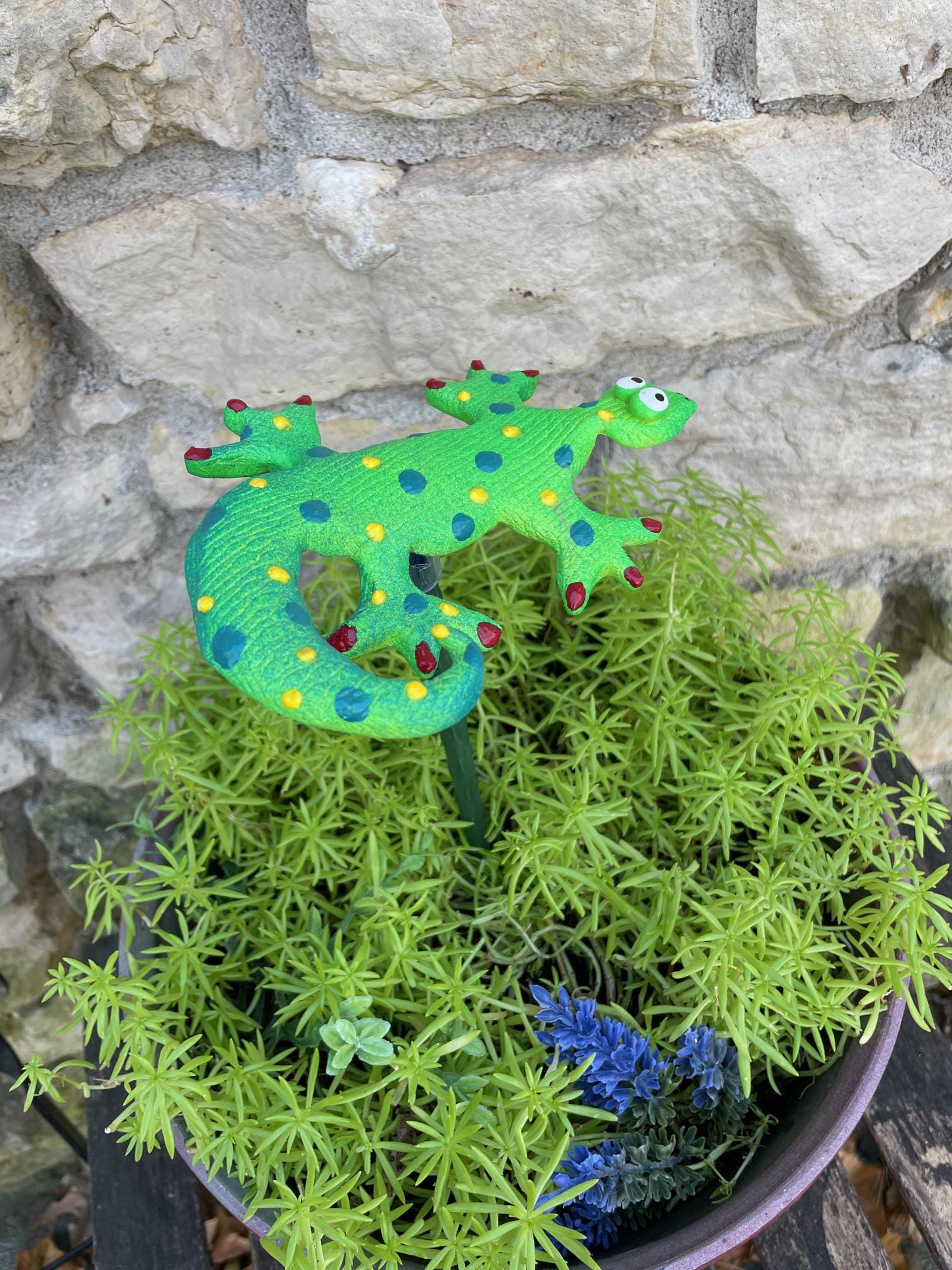 The Lizard is weather-resistant and require no watering, making it an ideal choice for any garden or outdoor space. These Lizards are also airbrushed with enamel paint and finished with a clear coat spray with UV-inhibiting properties to protect against the sun's fading effects.