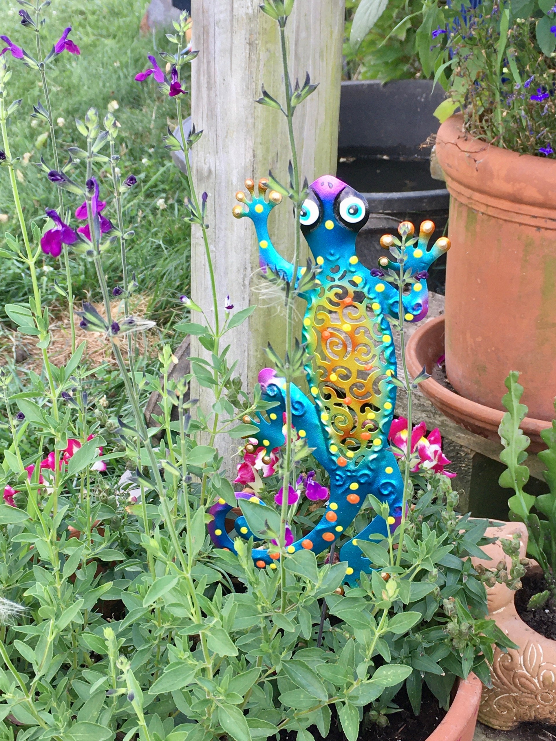 Get ready to add a touch of whimsy to your garden with the Whimsical Metal Chameleon-Lizard Garden stake. The perfect addition to any garden or a delightful gift for your loved ones! The Lizard is designed to add a touch of charm and character to your outdoor space, and with its durable construction, it is sure to brighten up your flower bed for years to come.