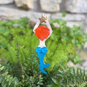 Measuring approximately 16 inches in height and 5 inches in width, this handcrafted fish stake is made from durable white stoneware clay and finished with a weatherproof gloss coating, making it suitable for both indoor and outdoor use. The ceramic stains and textured acrylic paint detailing provide a unique touch, making each piece one-of-a-kind.