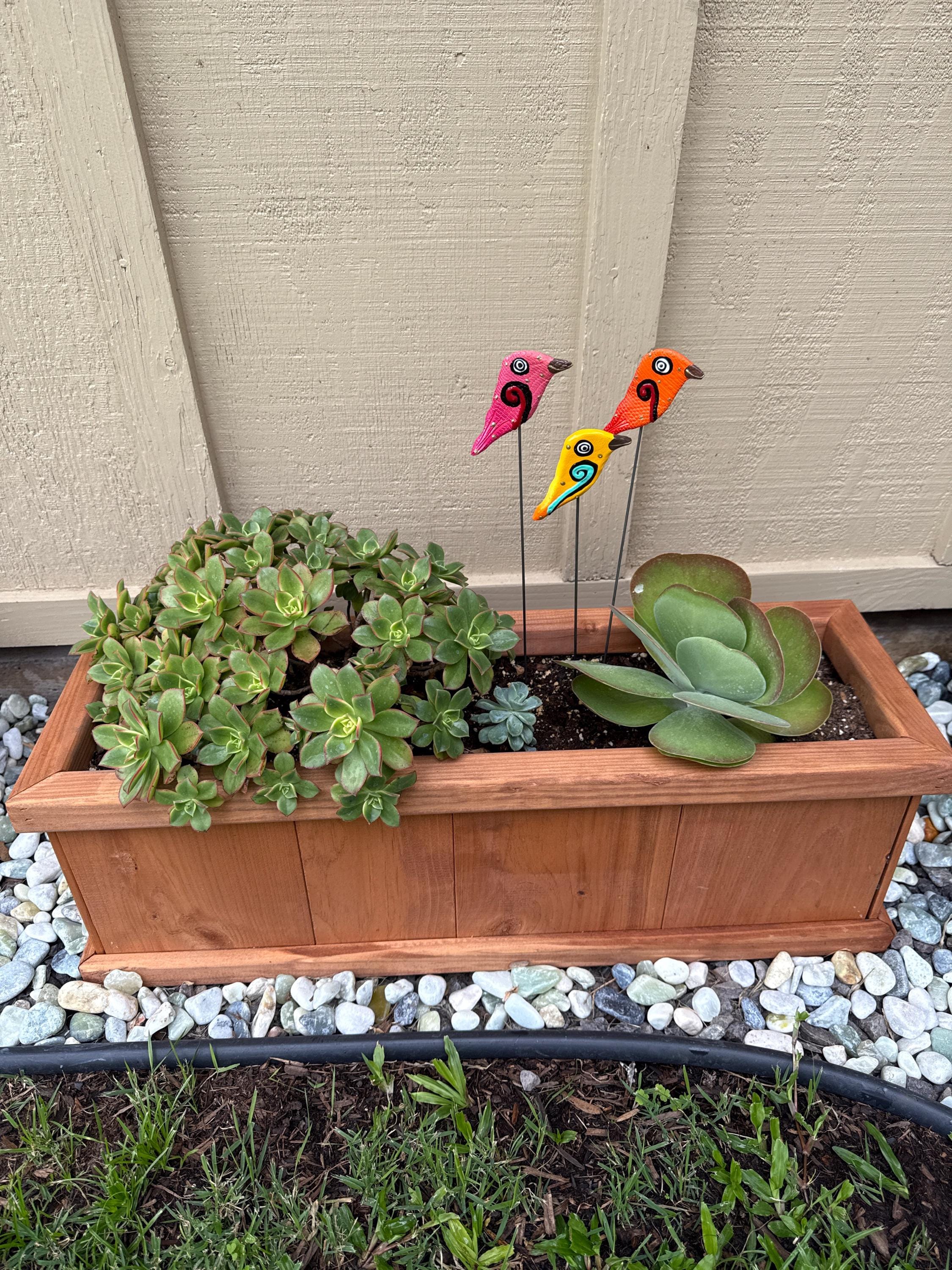 What a Fun Gift these tiny bright cute Yard Birds are! A Unique decorative Accent for your Potted Plants or a nice addition to your flower pots or anywhere in the garden.