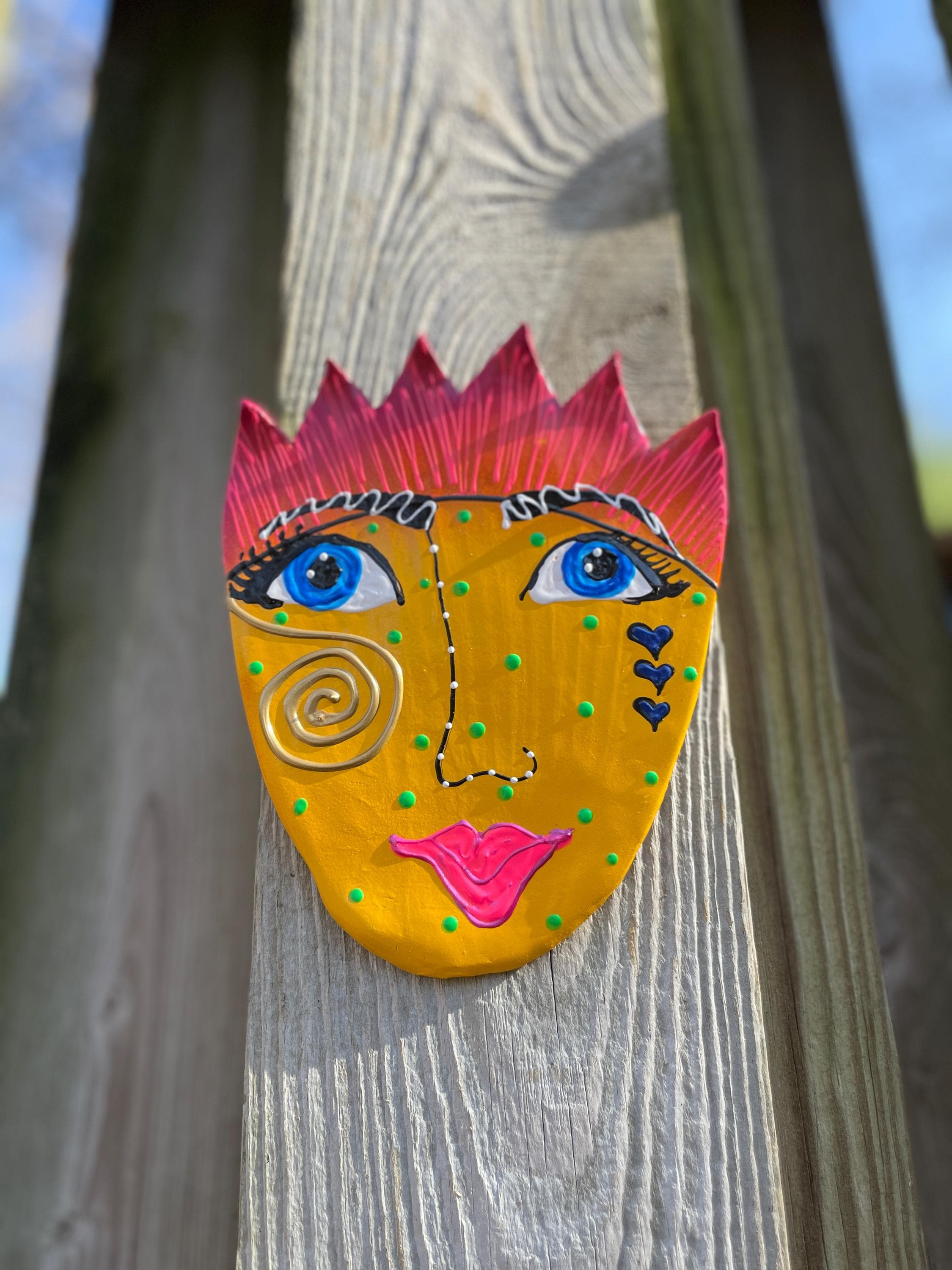 I ordered two whimsical ceramic faces to place on the backyard pergola posts. The colors are bright and cheerful and they definitely add to the ambience in my yard. I am very pleased with my purchase