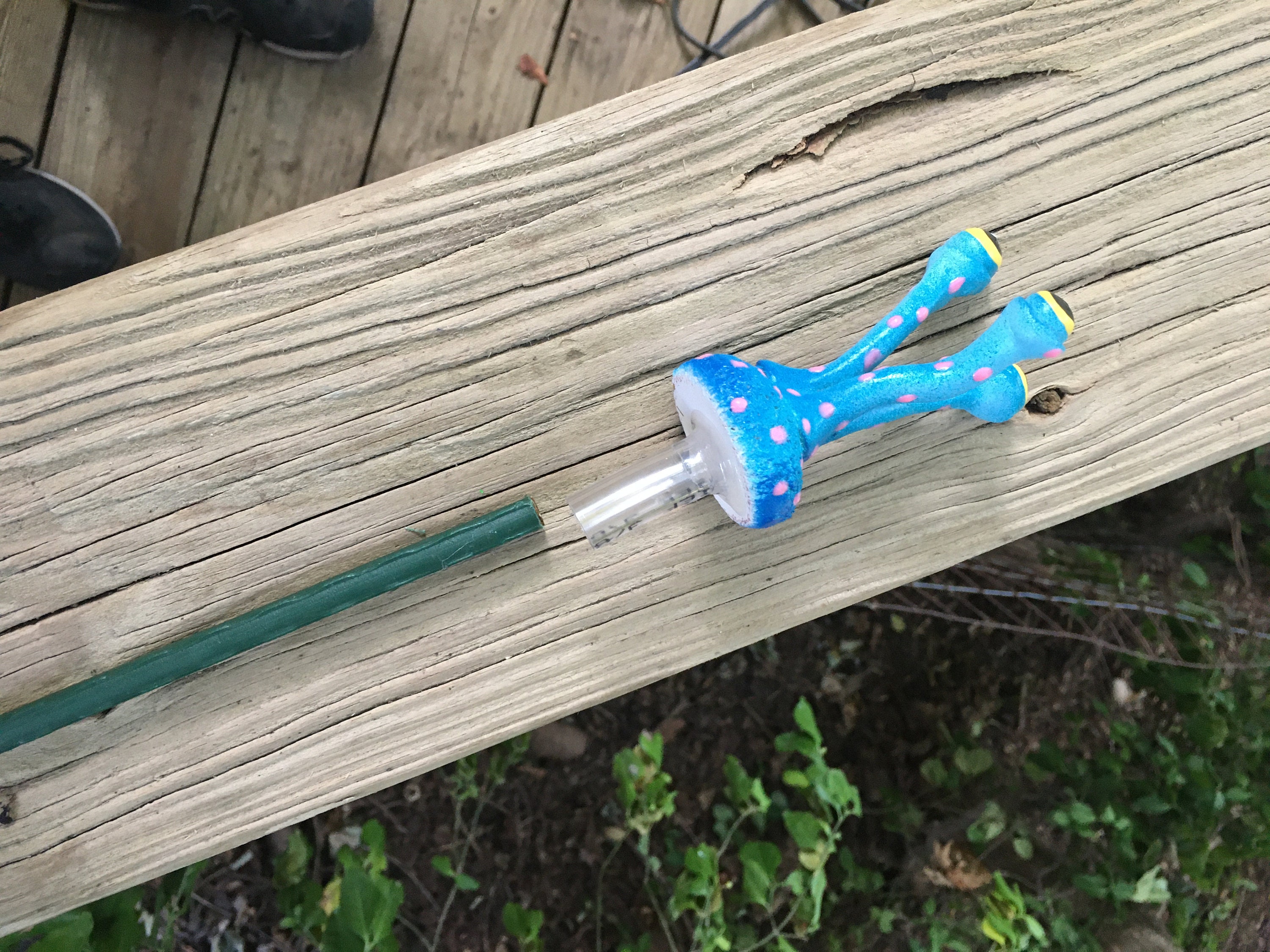 My garden art has a plastic tube glued to the bottom of the piece.