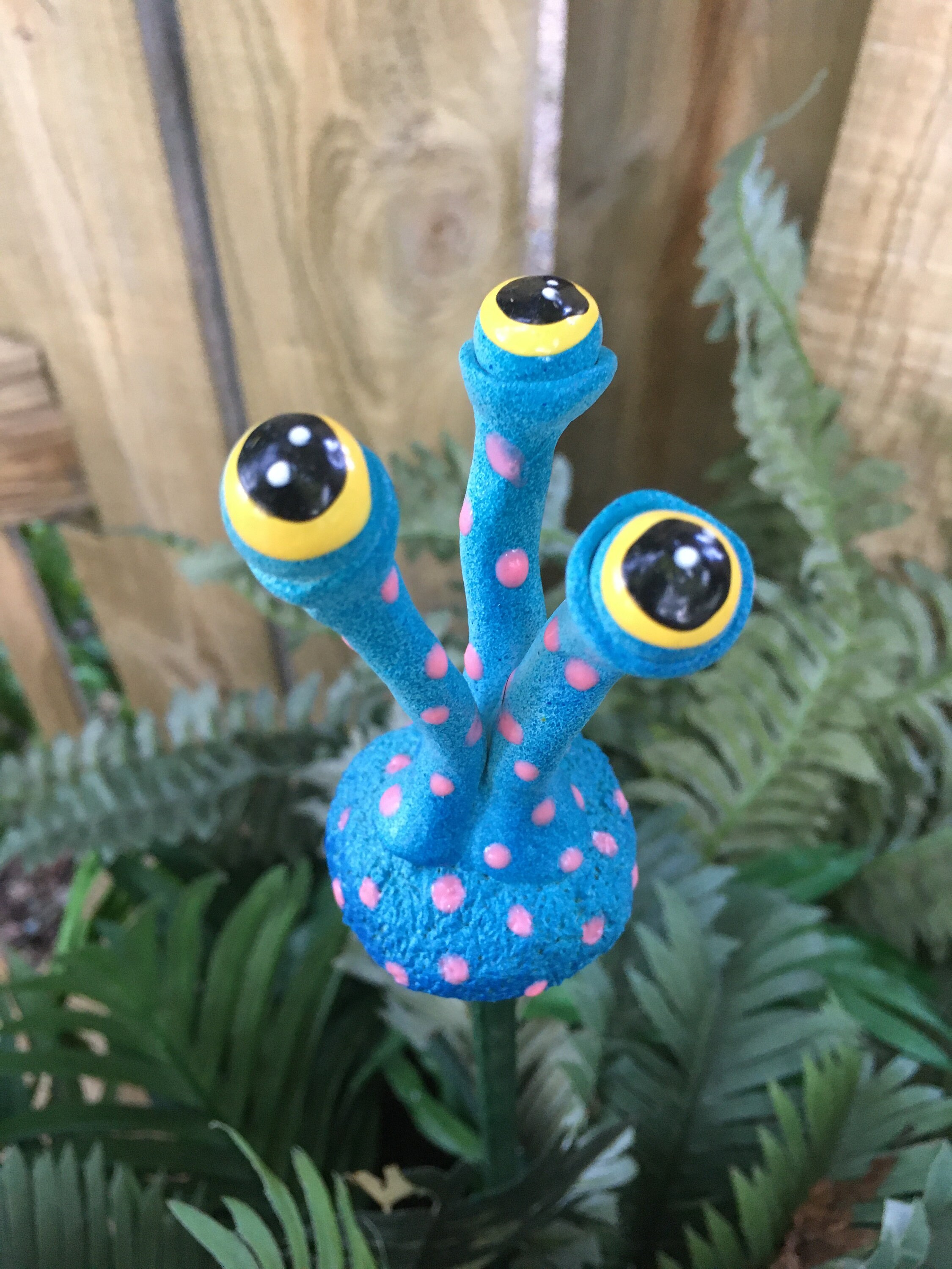 Let this fun, bright Alien- Monster grace your garden with Whimsy! A cute addition to your yard or garden.