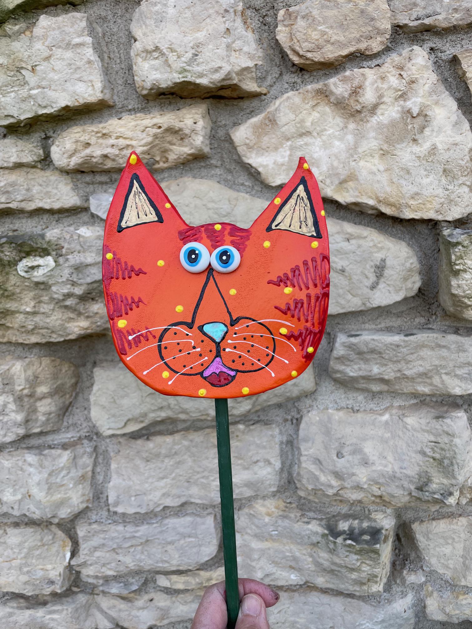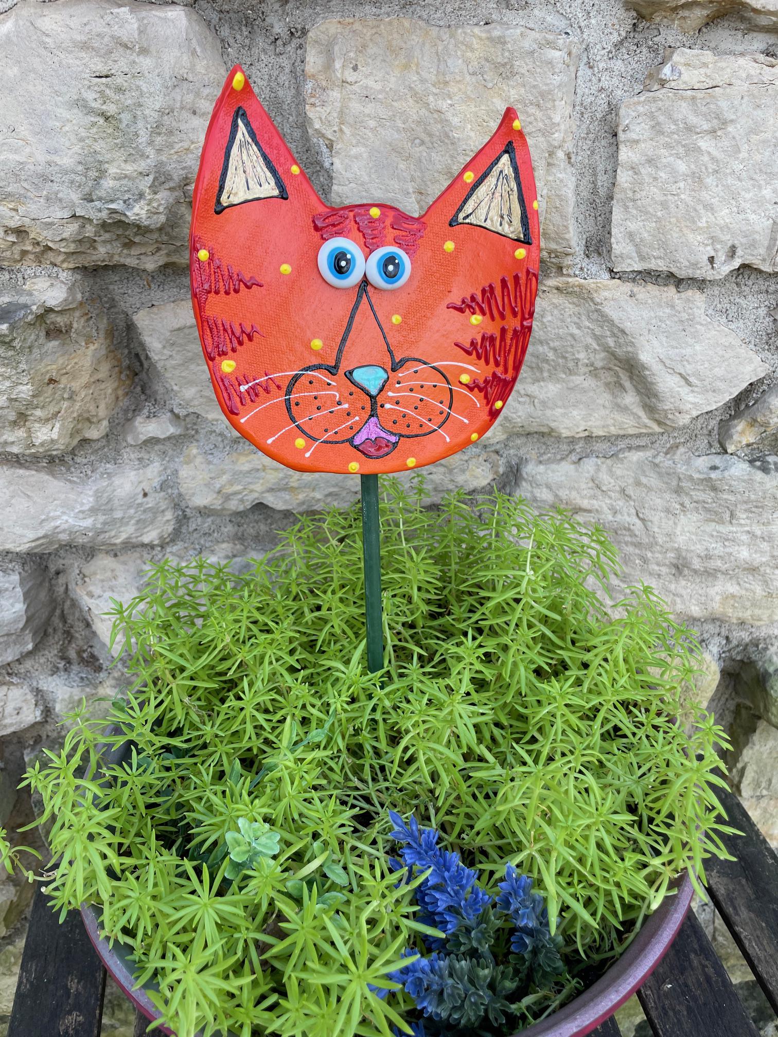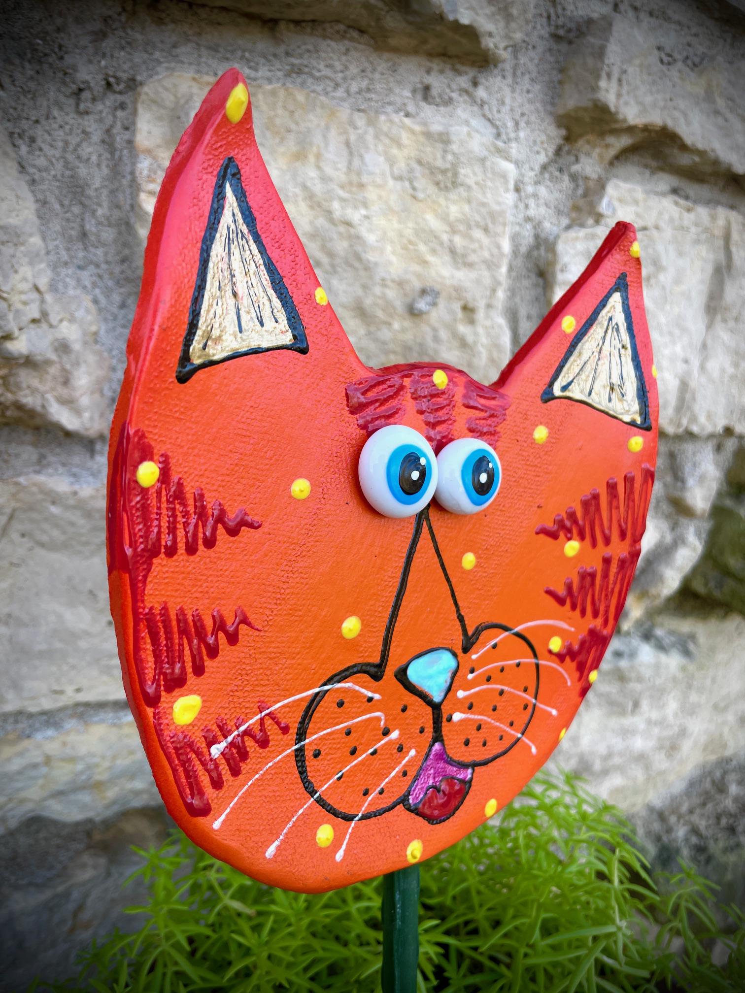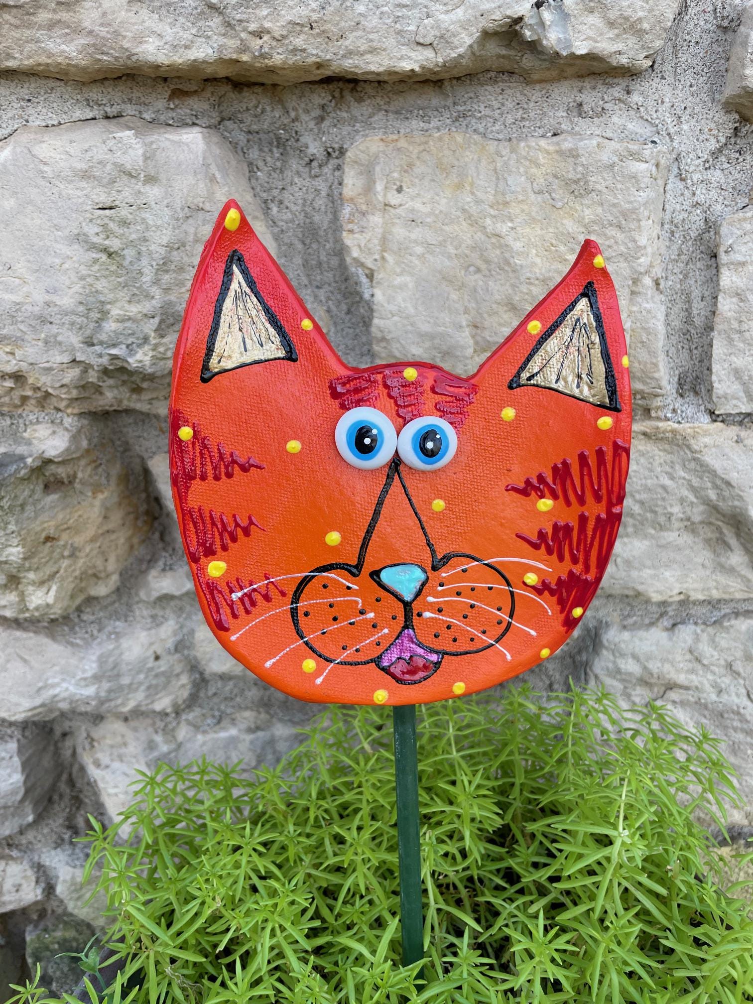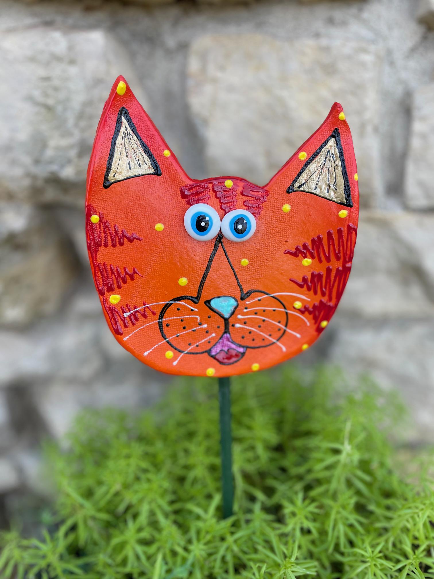 Catface Garden Art,Garden Decor Garden Statues, CAT Lovers Gift, Outdoor Decor,Catlady Gift,Kitty Cat with Stripes