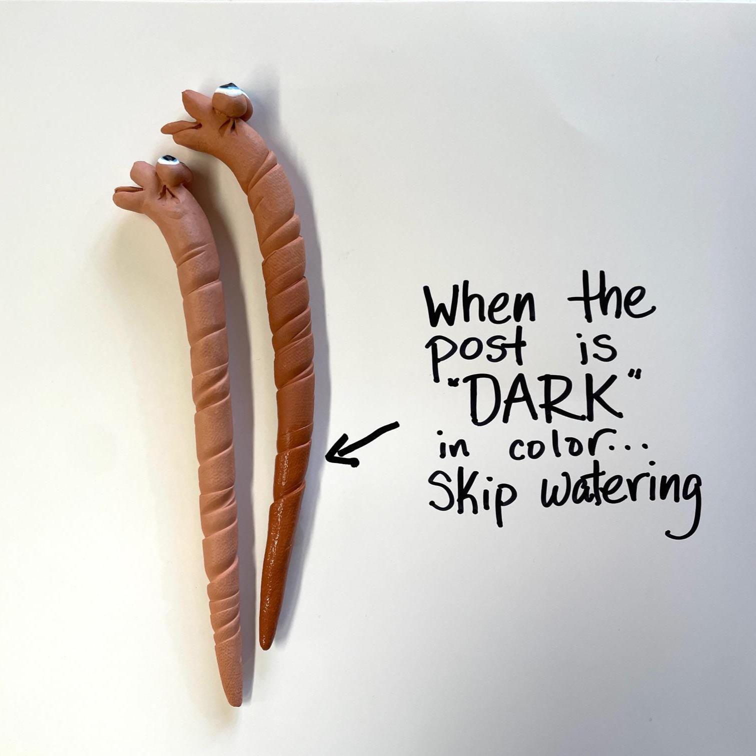These delightful little helpers keep watch over your pots, letting you know when to water by changing both color and temperature. If the worm's tail feels cool and appears darker, your plant has enough water. No matter how dry or wet, these adorable worms add a playful touch to your home or garden!