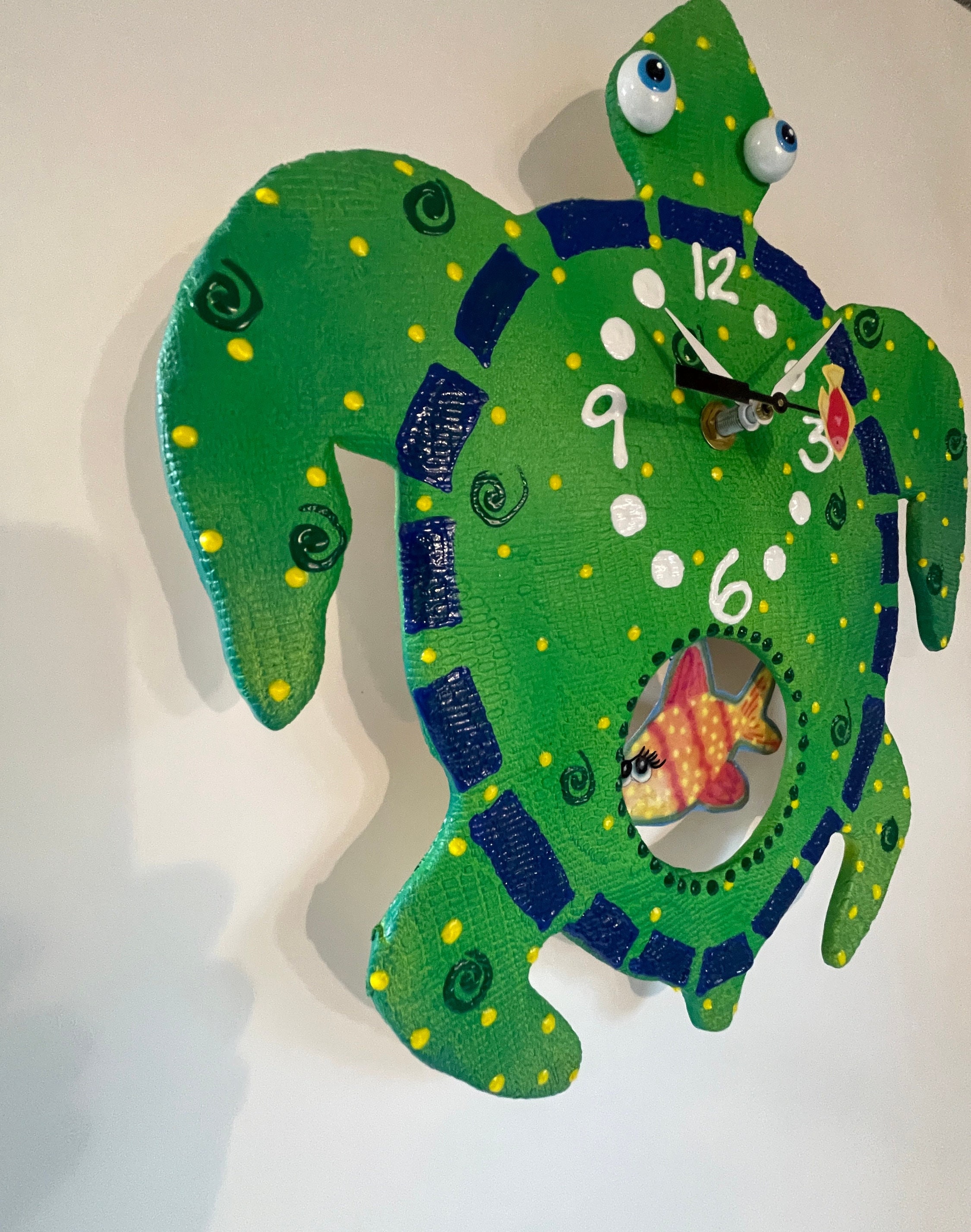 This clever ceramic Sea Turtle wall clock is hand made in my art studio in Fishers, Indiana.