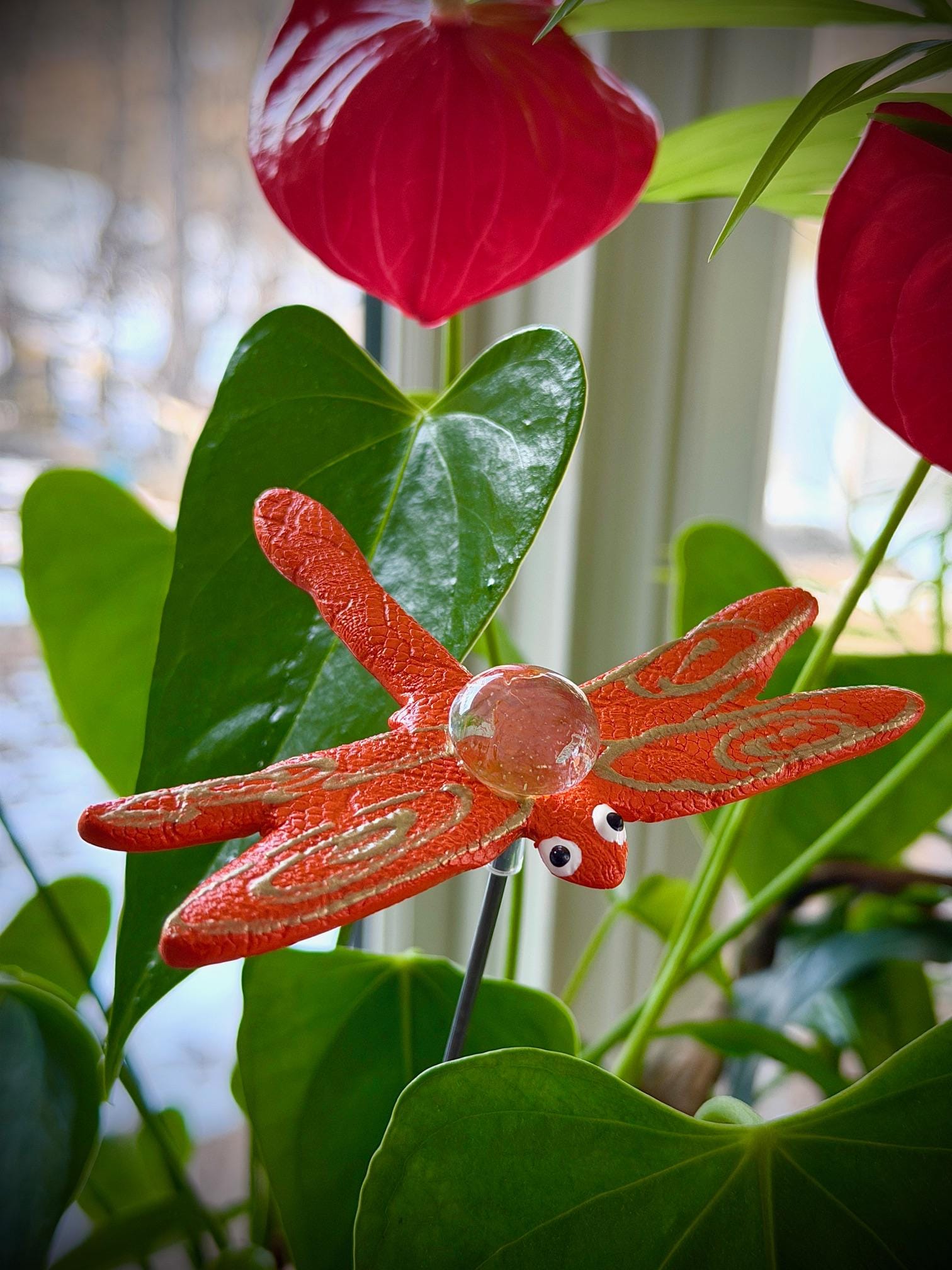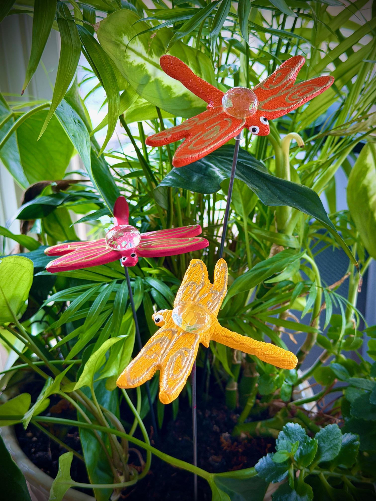 Dragonflies are very colorful. Make for a great addition to my planter.