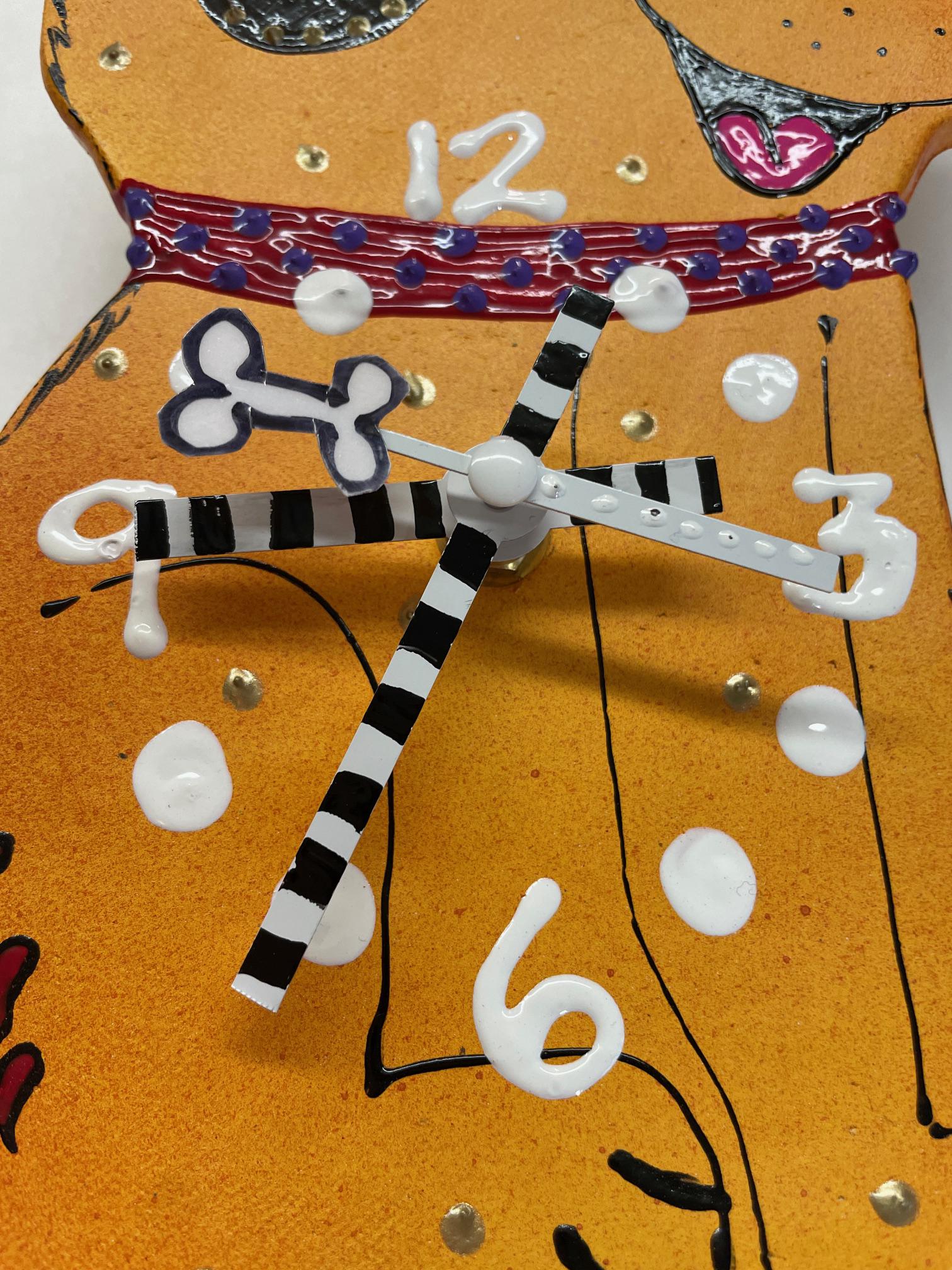Look closely...this very happy dog clock has a bone for the second-hand.